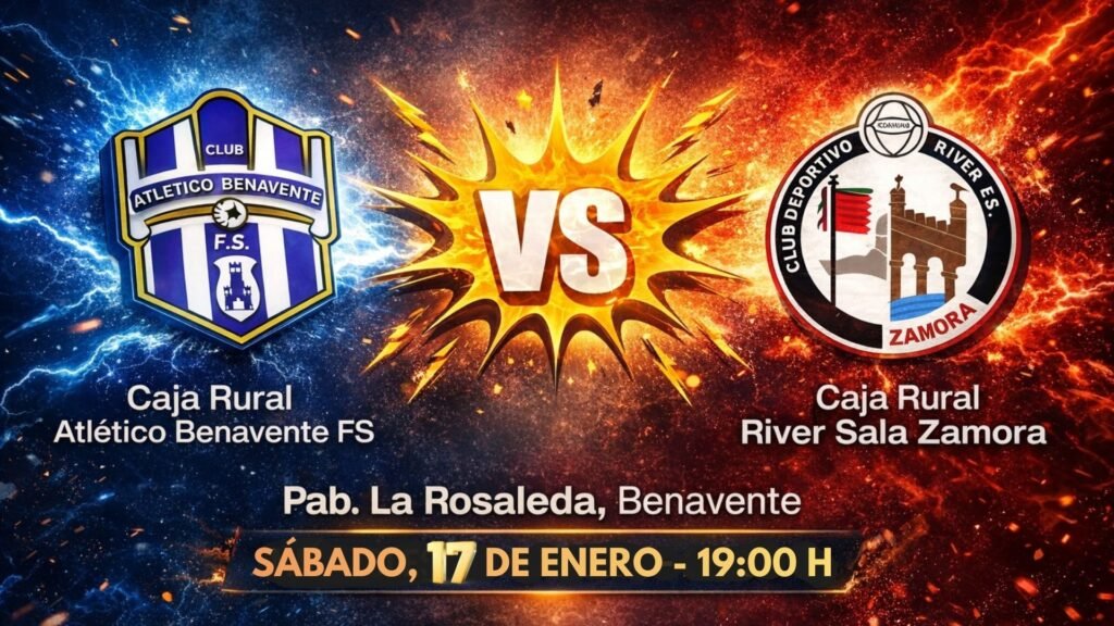 El encuentro correspondiente a la decimoséptima jornada de liga del Grupo 1 de Segunda División B del Fútbol Sala se disputará entre Caja Rural Atlético Benavente (5º) y Caja Rural River Sala Zamora (10º) y se disputará en el Pabellón La Rosaleda de Benavente el próximo sábado 17 de enero a las 19:00 horas. El derbi provincial llega con dos rachas diferenciadas, los locales con dos derrotas y los visitantes con dos triunfos.