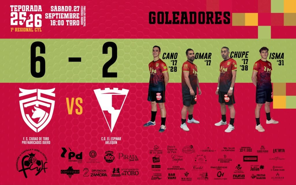 El equipo toresano viene de jugar la primera jornada de la competición este fin de semana pasado, venciendo en casa por 6-2 al C.D. El Espinar Arlequín. Cano y Chupe por partida doble y Omar e Isma fueron sus goleadores, en un encuentro que les encarama a los primeros puestos de la tabla clasificatoria.