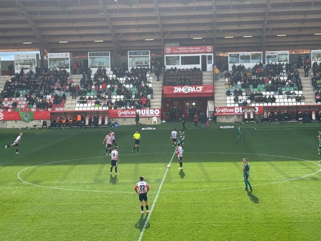 El único aviso reseñable del primer tiempo llegó en el minuto 28, cuando Kike Márquez probó suerte con un disparo desde la frontal que obligó a intervenir al guardameta visitante. Fue prácticamente la única ocasión clara de una primera parte en la que el Zamora volvió a mostrarse plano en la sala de máquinas, con poca fluidez en la circulación y escasos pases verticales capaces de generar peligro arriba.