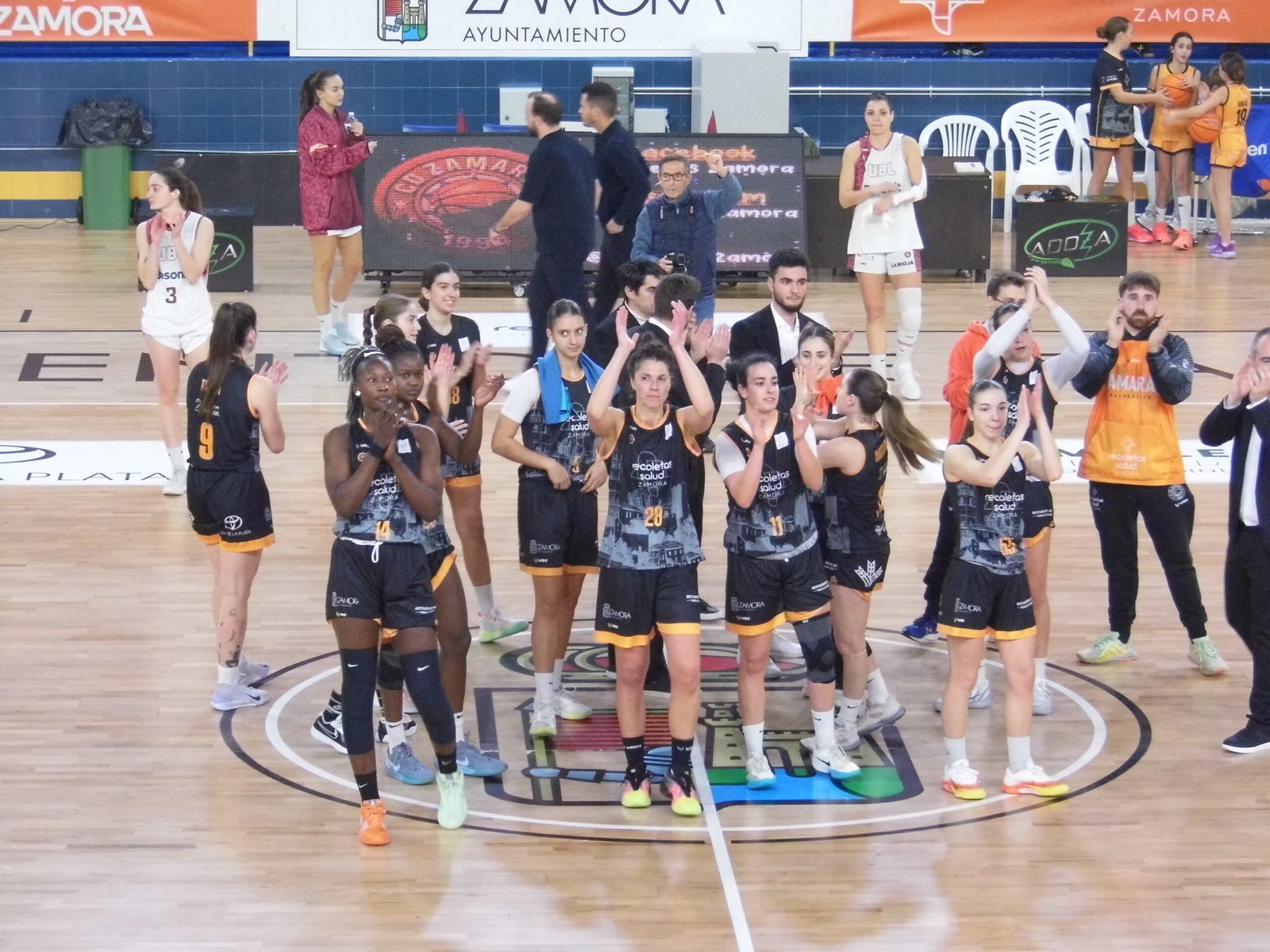 Tras el paso por los vestuarios Recoletas Zamora repetía el inicio del segundo cuarto, cuatro puntos iniciales abrían brecha por encima de los diez puntos (34-23), pero las riojanas respondían cada canasta local y se llegaba al 38-30, manteniendo la ventaja naranja.